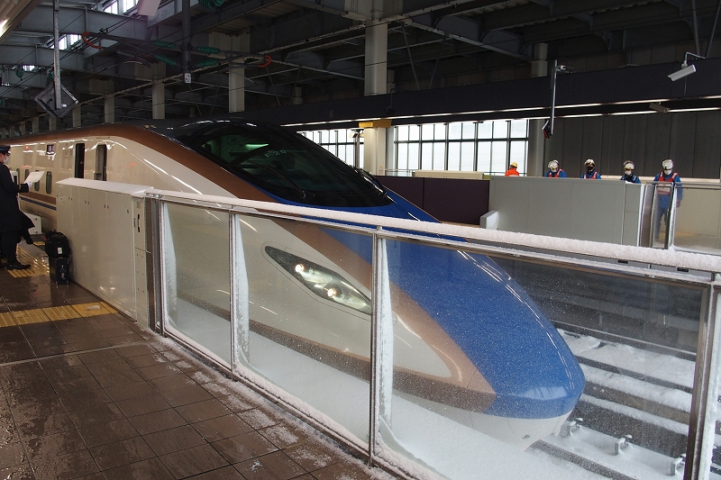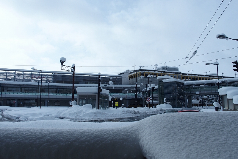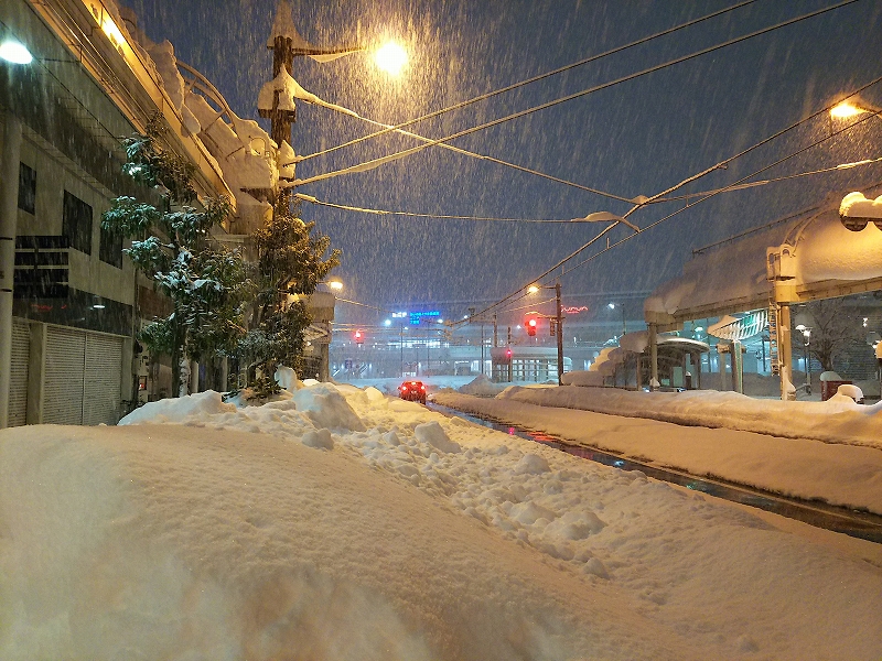 × [PR]上記の広告は3ヶ月以上新規記事投稿のないブログに表示されています。新しい記事を書く事で広告が消えます。 真冬の豪雪地帯の大雪と美味しいものを堪能するぞと。 何に乗って、どこへ行ったか● 主なJR路線:北陸本線、北陸新幹線、信越本線、篠ノ井線、中央本線、東海道本線 ◆Day 1◆ サンダーバードと北陸新幹線で富山県へよく晴れている京都駅からサンダーバードに乗ってスタート。乗った9号はいわゆる「速達型」で、京都を出ると福井と終点金沢にしか停まりません。 湖西線を経由するため、進行方向右側だと琵琶湖を眺めることができます。湖面がギラギラ輝いていました。まだまだ晴れています。この調子なら全然問題なく行けるのでは~? …が、敦賀の先の今庄トンネルを出てから景色は激変。急激に積雪が増え、激しく雪を巻き上げて&吹雪で窓の外がよく分からない状態になりました。太陽の光は全くありません。これには驚きました。 福井を出発してからは雪のため徐行気味になって、窓の外には雪かきをする人々の姿が見られました。お疲れ様です。石川県内に入って雪は小康状態になり、サンダーバードもスピードアップ。 ちなみにこちらは福井方面へ伸びる線路の様子です。敦賀までの延伸開業ももうすぐですね。 車掌さんの英語放送がとても流暢でした。もしかして内容もアレンジされていた?のかは分かりませんが、ここまで聞きやすいのはなかなか珍しいなと思いました。 新高岡からバスで氷見を目指すも…新高岡に到着し、いざ氷見へ…!あれ、「わくライナー」運休とな…? あ、ちなみに「べるもんた」(と氷見線と城端線)は早々に運休が決まっており今回は既に諦めています。またの機会にぜひ乗車したいと思います。 積もった雪の中をズボズボ歩いて、足回りが雪まみれになりながらもバスに乗り込みました。正直言って、悪路のためバスの乗り心地は最悪でしたが、それでも運行していることに感謝です。 轍になる部分以外には雪が積もり続け、おそらくバスの床下が積もった雪に擦れるのでしょう、進みながらバスが揺れまくります。これはもう壊れるか横転するのでは?とも思える空間でした。そこらの遊園地のアトラクションより断然怖い。だいぶ肝を冷やしました。 この横断歩道あたりから状況がさらに怪しくなってきます。バスが進まず、前を見てみると車の長い長い列が!これ、もしかしなくても「立ち往生」…ってやつですかねえ…? なお雪は標識の高さにまで積もっています。 雪に埋もれた街を歩く結局16時を過ぎても状況は変わらず。立ち往生したバスから降ろしてもらい歩いて引き返すことにしました。高岡駅付近までは約4km、もちろん自力で歩くのみです。まさかこんなことになるとは…。やむなくお宿も変更。 屋根に大量の雪が積もっていたり、標識のすぐ下にまで雪が迫っていたりという風景は人生で初めて見ました。「雪に閉ざされる」とはまさにこうした状況なのでしょうか。 道中にあった神社は雪を被って何やら神秘的な雰囲気に。当時は身の危険も若干感じていたので、さすがに参拝するほどの余裕はありませんでした。今思えばちょっと入ってみても良かったかな、とも。 それにしてもよく滑りました。滑らないように注意して歩くのですが、少し気が逸れるとすぐに転びます。1分に1回は転んでいたのでは、と思うレベルでしたが幸い最後まで怪我はなく進むことができました。先の神社の神様が見守ってくださっていたのでしょう。 歩道にも雪がどっさり。こんな豪雪の中でも歩いていた先人たちのおかげで一応歩ける部分はあるのですが、幅が一人分あるかどうかで、両脇は雪の壁です。足元は踏み固められた部分とそうでない部分の区別がつかず、途中で何度もつまずいたり雪の壁にダイブしたりしていました。 車道の中央を走る路面電車、万葉線の電停の様子は…。 当然ながら終日運休でした。 歩いて戻ってきた高岡駅周辺の様子コインパーキングの様子です。なぜか満車の表示になっていることが分かります。雪の重みで誤検知してしまっているのでしょうか。精算機上の屋根に積もった雪で積雪量が一目瞭然です。 融雪装置がフルパワー稼働してくれているのは良いのですが、おかげで低いところにある道路には巨大な水溜りが発生していました。車で進むなら問題ありませんが、歩行者には厳しい。いやそもそも出歩くのがおかしいのか。 高岡駅の方を向いてみるとこんな感じ。ここの車道中央にも路面電車が走りますが、もちろん雪で埋まっています。 こうして雑然とした電線に雪が積もっているの、「風景としては」雰囲気があって良いですよね。ただし実際に見て歩いていると少し怖かったです。 高岡駅地下街の飲食店は軒並み休業で、コンビニのおにぎりやパンも品薄の状況でした。仕方なくカップラーメンを啜るほかありません。氷見寒ブリ、食べたかった…。 ◆Day 2◆ 雪を被った高岡大仏を拝む高岡での連泊も検討