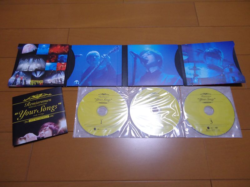 パチパチパチ 目が痛痒いという悲惨な状況の中 TSUTAYAに行って買ってきましたよ。 470ポイントもついたよ。 早速写真を撮りましたのでうpします! 右上:豪華3枚組! (うちCD2枚、DVD1枚) 左下:歌詞カード(ポスター裏)と 裏ジャケット。 ポスターはORS SHOPで買わなくてもついてるんやねー! よかったよかった。 Live Album「"Your Songs" with strings at Yokohama Arena」 2011.04.27 ■初回生産限定盤[2CDs+DVD]■ AVCO-36059/60B ¥4,800(tax in) 紙ジャケット仕様 ■通常盤[2CDs]■ AVCO-36061/62 ¥2,800(tax in)