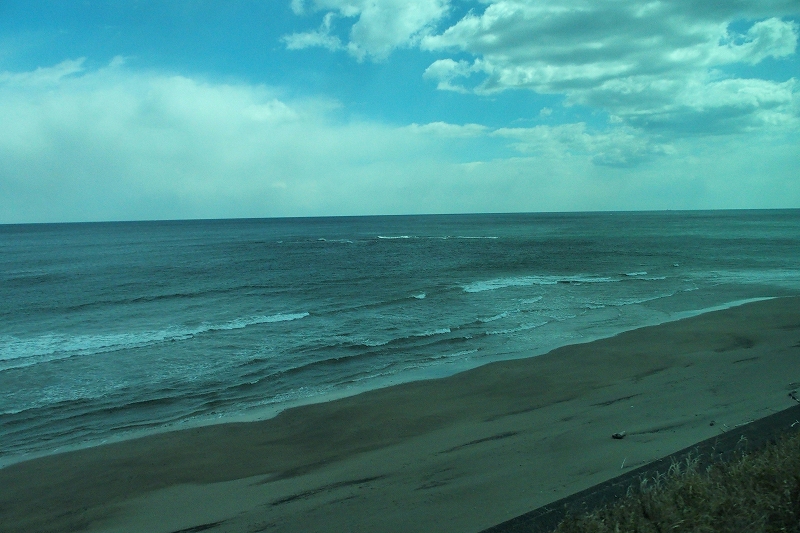 ありません。鮫を出てからは早速海岸沿いを走るので、東側の座席に座ります。穏やかな