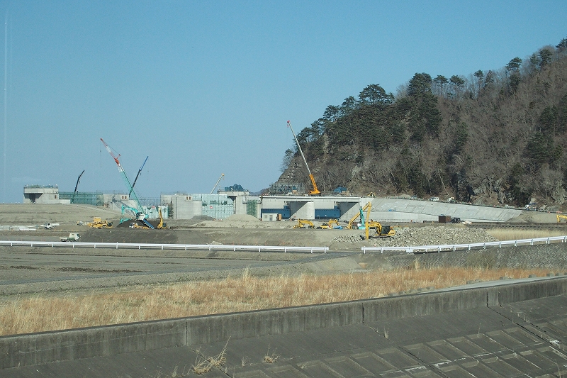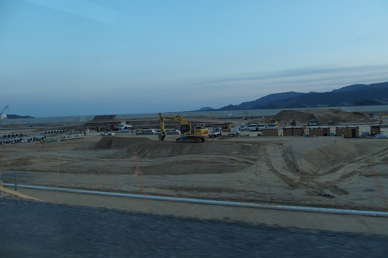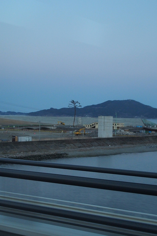 車窓から奇跡の一本松も見ることができます。周囲はひたすら造成中です。