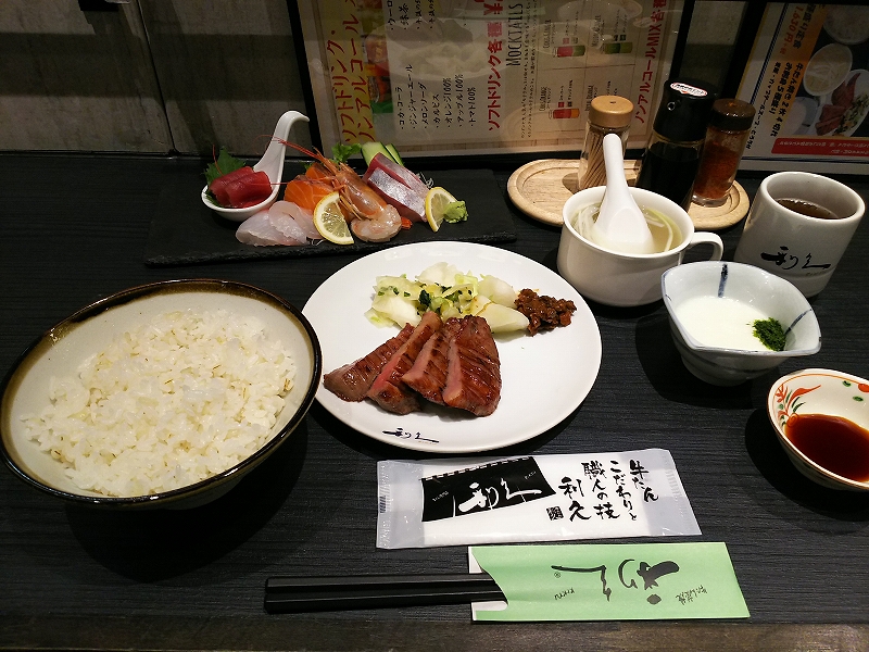 昼食には「利久」にて牛タンと刺身!せっかくなので豪華にしてみました。というかこれまでの